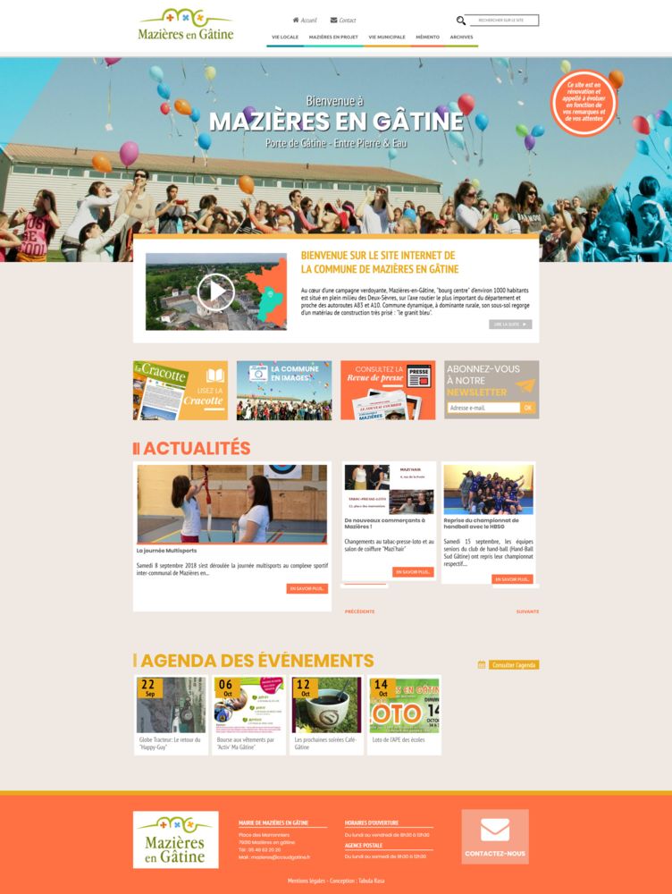 6 ans après la création de son premier site la commune de Mazières en Gâtine nous a fait le plaisir de nous confier la refonte de son site Internet. Au programme une nouvelle ergonomie faisant la part belle aux outils dirigés vers les habitants et mettant en valeur les projets de la commune. La maquette est moderne et dynamique, à l'image de la commune, et le site respecte les normes en vigueur.